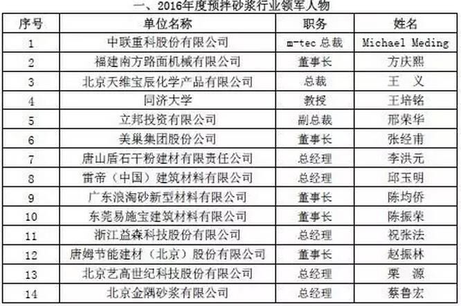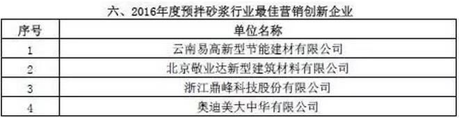 附:2016年度預(yù)拌砂漿行業(yè)表彰評(píng)比名單