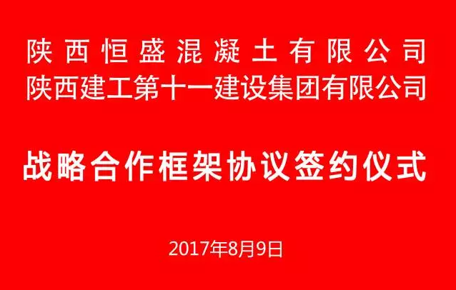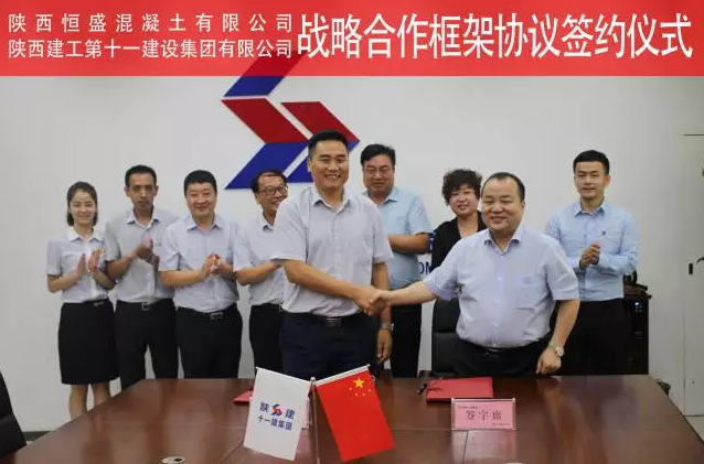 8月9日,陜西恒盛混凝土有限公司與陜西建工第十一建設(shè)集團有限公司戰(zhàn)略合作框架協(xié)議簽約儀式在陜建十一建集團西安總部隆重舉行。陜西恒盛集團董事長王武鎖,陜西建工第十一建設(shè)集團有限公司總經(jīng)理馮宏斌出席儀式代表雙方簽約。