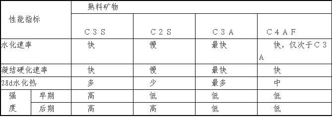 硅酸鹽水泥熟料的礦物組成,是影響水泥凝結硬化的主要因素,四種熟料礦物的水化、凝結硬化特性見表2—1所示。