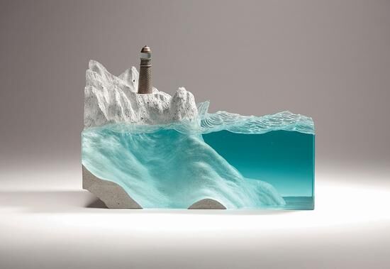 水、陸地、巖石被這位來(lái)自悉尼的雕塑家Ben Young用玻璃和混凝土打磨得惟妙惟肖,逼真同時(shí)很藝術(shù)。Ben Young出生在新西蘭,從事玻璃雕塑制作已有10多年的時(shí)間。他的作品看上去嚴(yán)絲合縫,精確細(xì)膩,盡管是混凝土這種粗糙的材料,也被打磨得如奶油般光滑。