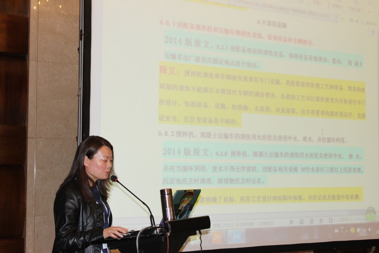 北京市砼協(xié)會秘書長齊文麗女士對《預(yù)拌混凝土綠色生產(chǎn)管理規(guī)程》及北京市“治超治限”政策解讀作了詳盡的講解。尤其是切合本次攪拌運輸車研討的主題,重點闡述了攪拌車在政策當(dāng)中超限問題、攪拌車清潔問題,并對全封閉工作作出解讀。政策規(guī)定是詳盡和嚴謹?shù)模幜P力度也是非常之大,從首都北京的政策解讀中讓與會者感受到了行業(yè)發(fā)展的方向和設(shè)備生產(chǎn)單位制造改善的方向;
