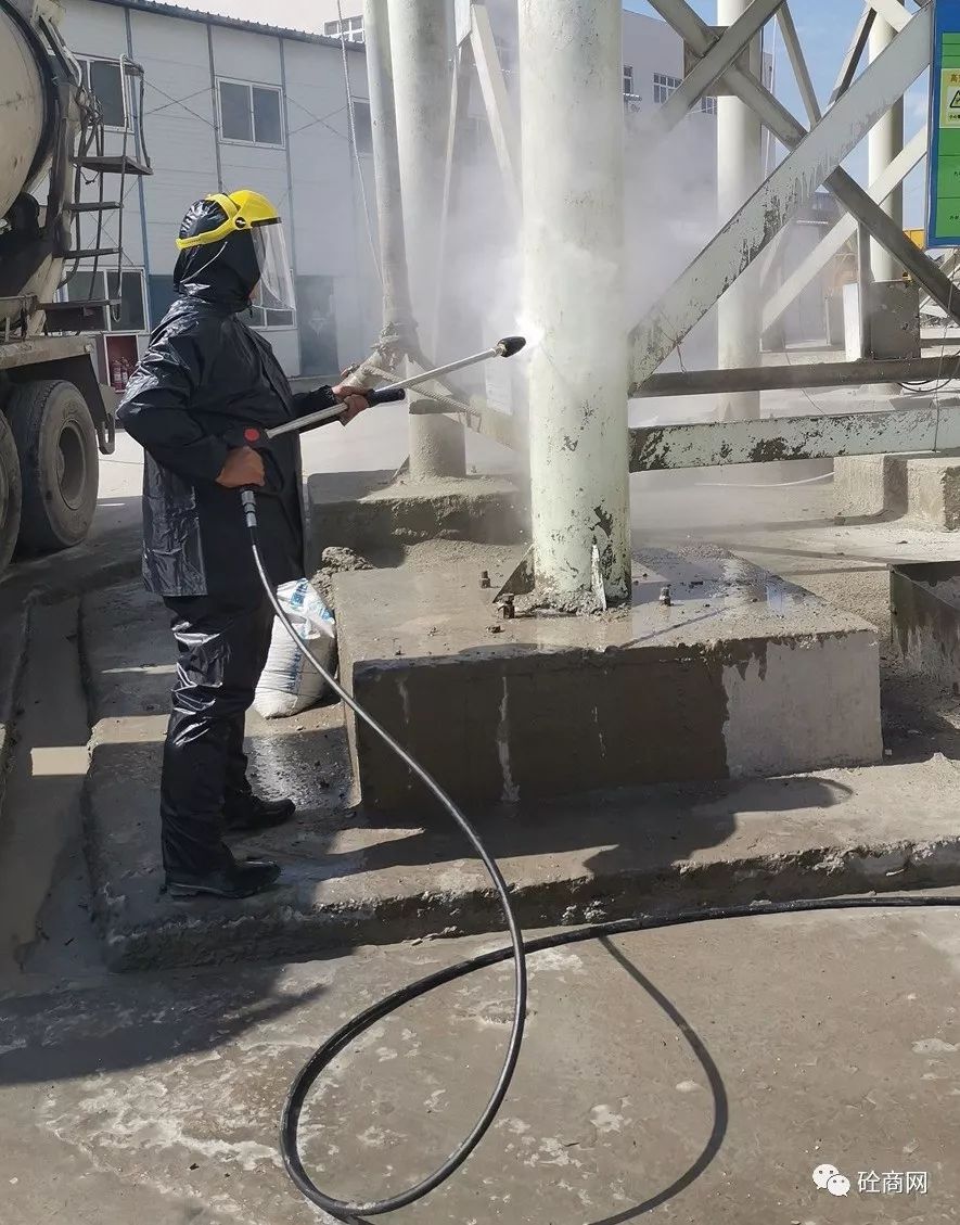 在楊技術(shù)員給站上工作人員進(jìn)行初步講解指導(dǎo)后,首先對兩年沒有清理過的水泥倉支腿下方累積的混凝土進(jìn)行了處理。那么,效果究竟怎么樣呢?具體視頻關(guān)注“砼商網(wǎng)”公眾號,回復(fù)“高壓清洗機(jī)”即可獲得技術(shù)員正準(zhǔn)備打攪拌機(jī)主樓容易噴濺混凝土的地方時該攪拌站站長說道,這可得有兩年沒清理過的混凝土結(jié)塊,十幾公分厚呀!你們這高壓清洗機(jī)能打掉嗎?這是混凝土??!這么長時間了,還這么厚,打不下去怎么辦?正在小編心里打鼓的時候,楊技術(shù)員說道,沒問題,放心吧!