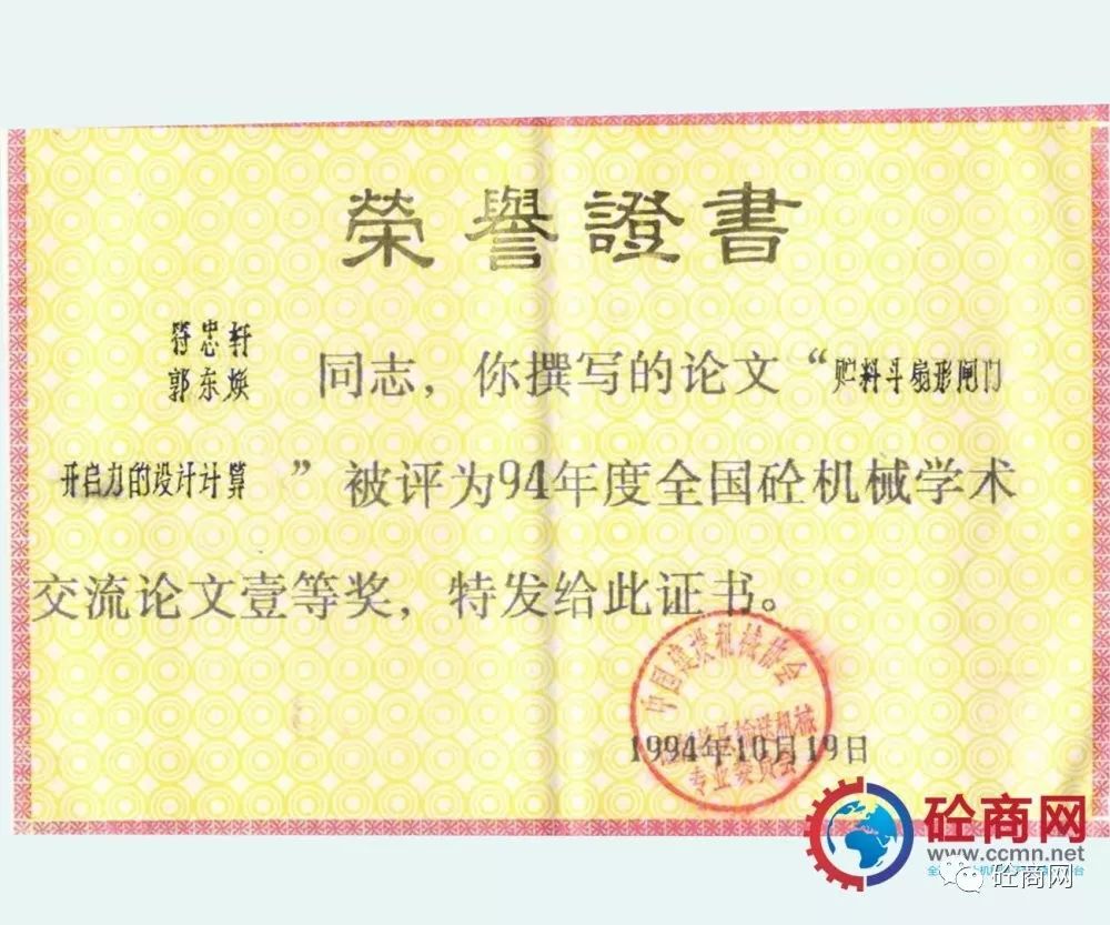 行業(yè)引領(lǐng)發(fā)展,研發(fā)人員積極性高。本人作為科研人員先后發(fā)表了《儲料斗扇形閘門開啟力的設(shè)計計算》被評為1994年度全國砼機械學(xué)術(shù)交流論文一等獎,本文引入“水力學(xué)半徑”的概念,較為詳盡的介紹了目前在混凝土攪拌站、配料站上大量采用的扇形閘門料斗的開啟力計算,為配料機構(gòu)的設(shè)計選型提供了理論依據(jù);發(fā)表的《談裝載機上料形式混凝土配料(攪拌站)的發(fā)展》被評為1992年度全國砼機械學(xué)術(shù)交流會優(yōu)秀論文獎,本文針對當(dāng)時混凝土攪拌站上料型式較多:懸臂拉鏟、鏈斗機及裝載機上料型式等,分析了國內(nèi)發(fā)展的實際,提出了裝載機上料形式為未來發(fā)展方向;1997年發(fā)表在《建設(shè)機械技術(shù)與管理》雜志第五期的《混凝土泵攪拌葉片的合理布置》,以全球量大面廣的S閥為例,分析了幾種葉片布局形式對混凝土泵吸料性的影響,設(shè)計了一種正泵送料、反泵扒料合理的攪拌葉片布局形式。