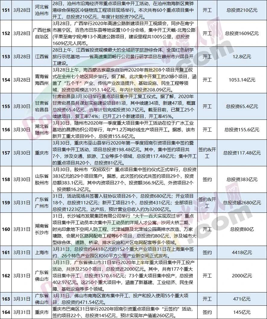 3月全國(guó)新開工和簽約項(xiàng)目一覽表