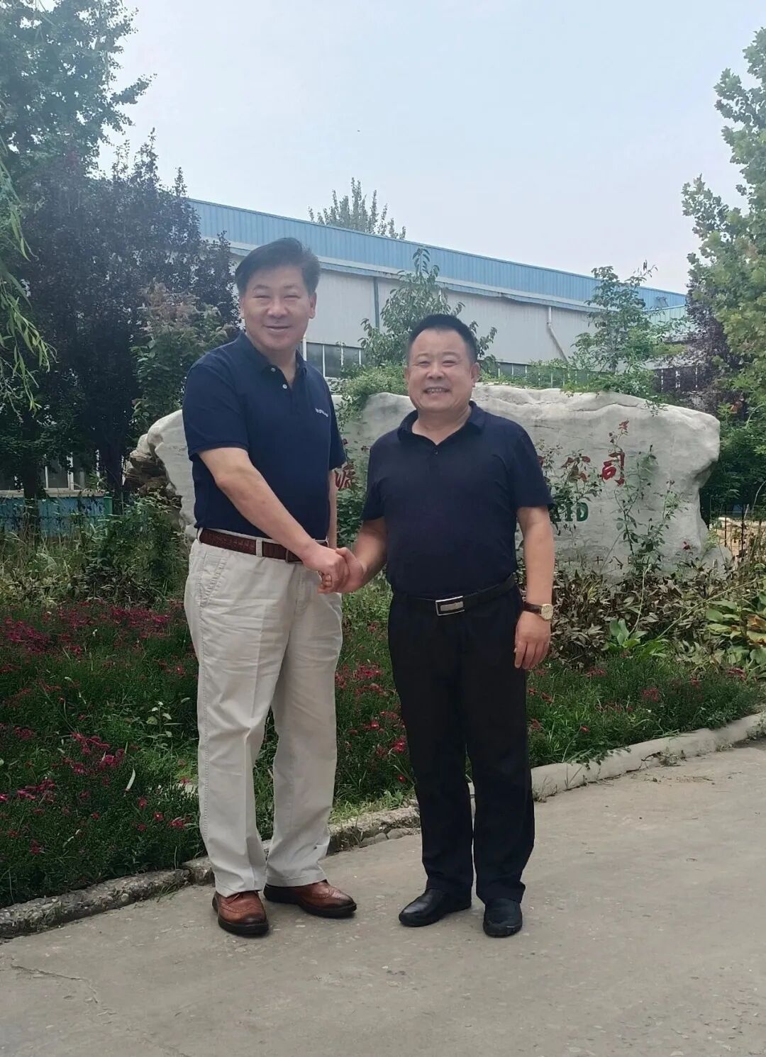 會議室交流結(jié)束之后,申總陪同符會長一行參觀了公司的集成房屋和攪拌站、PC設(shè)備的生產(chǎn)現(xiàn)場,最后在公司樓前合影留念。