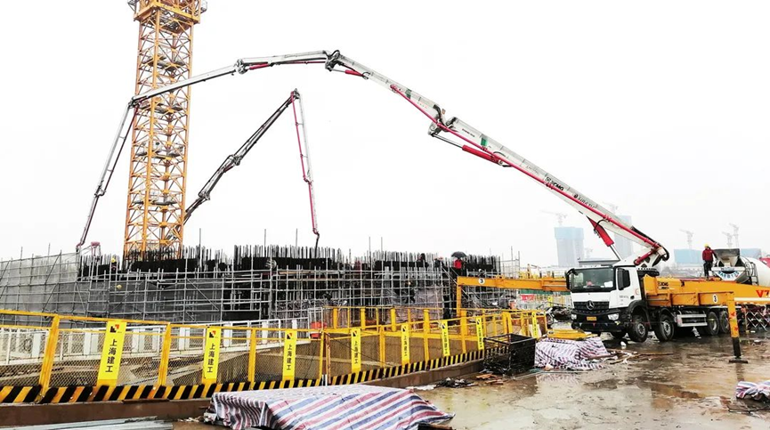 此次底板澆筑的混凝強(qiáng)度等級(jí)達(dá)C50P10,屬于高強(qiáng)度混凝土,其配合比更是屬于施工方“量身定制”,混凝土性能提升的同時(shí)也給泵車施工帶來了巨大的壓力。