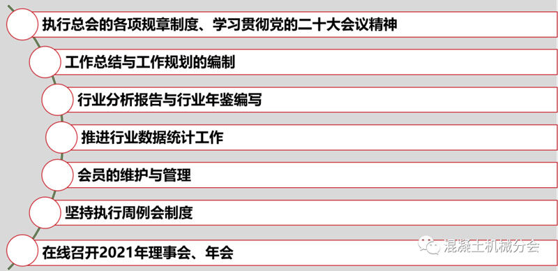 協(xié)會篇主要內(nèi)容包括:規(guī)劃混凝土機械行業(yè)發(fā)展戰(zhàn)略與發(fā)展目標(biāo)。不斷加強團隊建設(shè)與組織建設(shè)、服務(wù)會員企業(yè)、引導(dǎo)行業(yè)解決卡脖子問題、維護行業(yè)發(fā)展秩序、打造行業(yè)上下游全產(chǎn)業(yè)鏈緊密聯(lián)動的行業(yè)協(xié)會,加速推進國產(chǎn)化進程,推動行業(yè)高標(biāo)準(zhǔn)、高質(zhì)量發(fā)展。