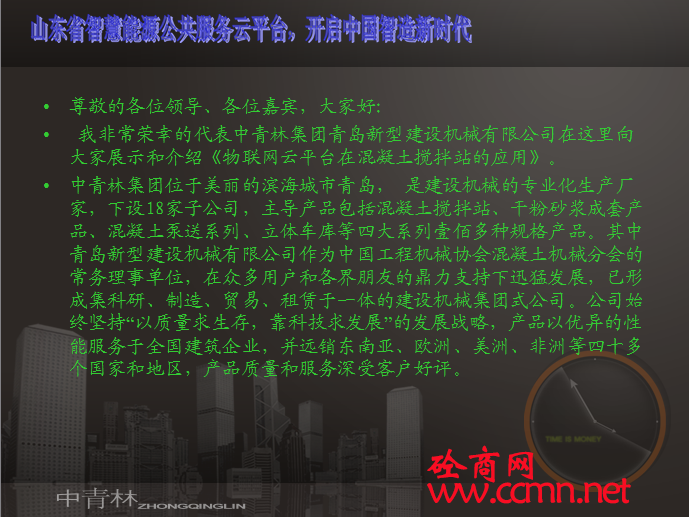 山東智慧能源公共服務(wù)平臺于6月16日開通,該平臺可以實現(xiàn)對鍋爐、電梯、變頻機組、分布式光伏電站、熱力管網(wǎng)、等運行數(shù)據(jù)實時在線采集和分析控制,為中小企業(yè)提供能源管理服務(wù)。青島新型建設(shè)機械有限公司以徐君飛徐總為代表參加了本次服務(wù)平臺開通儀式,徐總在現(xiàn)場就物聯(lián)網(wǎng)云平臺對攪拌站的管理服務(wù)進行闡述。