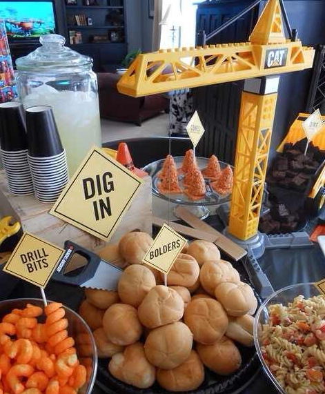 這里是主食區(qū),鑒于工程機(jī)械行業(yè)人人心靈手巧,請(qǐng)用此挖掘機(jī)DIY漢堡享用!各位,吃飽了也別忘了把這些土塊清清干凈那!