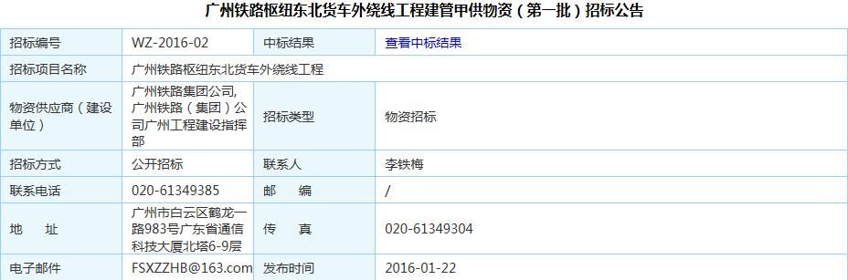 廣州鐵路樞紐東北貨車外繞線工程建管甲供物資招標公告