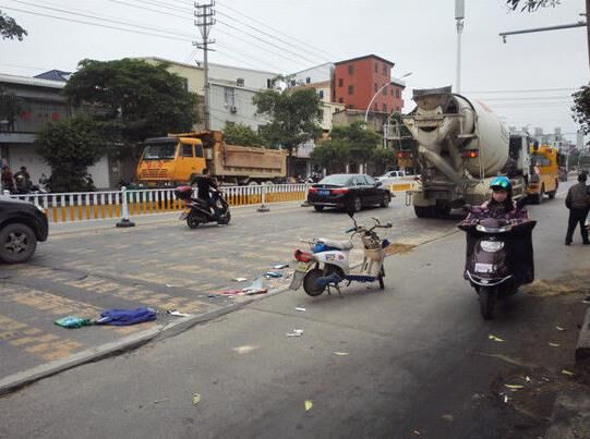 事故的過程被附近一家商店的監(jiān)控探頭拍下。根據監(jiān)控錄像顯示,事發(fā)當天上午11時許,混凝土車和電動車都是從福清市區(qū)開往??阪?zhèn)方向,當電動車行駛至事發(fā)路段時,可能為了避讓前方一輛逆行的拉煤球的板車,騎電動車的女子便向左拐,突然間被后方快速行駛的混凝土車撞倒碾壓,女子當場倒在血泊中。整個過程大約持續(xù)10秒鐘。