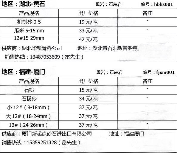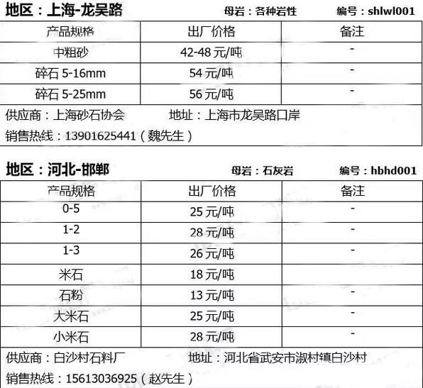 【新聞】2016年6月全國各地區(qū)砂石骨料產(chǎn)品最新報價信息
