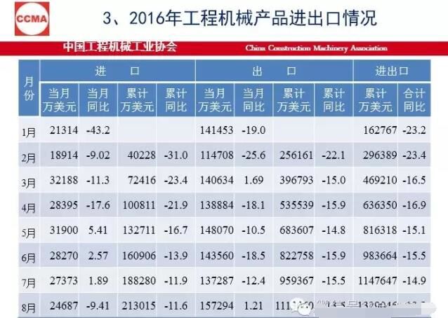 今年9月份挖掘機(jī)同比銷(xiāo)量增加71.4%,1到9月增長(zhǎng)26.3%。出口還是在高位,但是還有13%左右的降幅。在裝備制造業(yè)里,尤其是機(jī)械行業(yè)里,我們還是比較好的,進(jìn)口的數(shù)是越來(lái)越少。