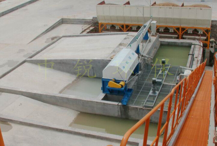 該系統(tǒng)主要由:攪拌車加水清洗裝置,溜槽輸送裝置,砂石漿水分離裝置,和泥漿水后處理裝置組成。混凝土輸送設(shè)備清洗后,將殘余混凝土排入溜槽中,在高壓水流沖擊下,經(jīng)溜槽進(jìn)入砂石分離機(jī),在不斷旋轉(zhuǎn)的分離機(jī)作用下,對(duì)混凝土進(jìn)行充分的清洗,同時(shí)將砂、石進(jìn)行分離,分離后的砂、石在導(dǎo)料葉片的作用下背向流動(dòng),再通過(guò)提升式出料口排出分離機(jī),分別堆放。清洗后的漿水從分離機(jī)的底部排出進(jìn)入沉淀池逐級(jí)沉淀后循環(huán)使用或進(jìn)入攪拌池回收利用。進(jìn)入攪拌池(一般情況2個(gè)攪拌池)的漿水為了防止沉淀凝固,需通過(guò)攪拌器的作用,攪拌器的工作為間歇式。分離出水泥漿在連續(xù)的攪拌器作用下,再通過(guò)高壓污水泵輸送到攪拌樓中待生產(chǎn)計(jì)量再利用。整個(gè)控制系統(tǒng)設(shè)有手動(dòng)和自動(dòng)控制,方便控制設(shè)置,整個(gè)系統(tǒng)運(yùn)行可靠,故障率低,維護(hù)量少等特點(diǎn)。