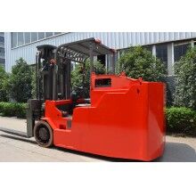使用自主研發(fā)的大噸位轉(zhuǎn)向橋機(jī)構(gòu),并已獲得專利權(quán),使得轉(zhuǎn)彎半徑更小,承載力大,轉(zhuǎn)向更輕松。與同噸位內(nèi)燃平衡重相比,與同噸位內(nèi)燃平衡重相比,具有軸距小、轉(zhuǎn)彎半徑小、低重心、具有極佳的轉(zhuǎn)向穩(wěn)定性、機(jī)動(dòng)性;采用大容量蓄電池,使得續(xù)航能力更強(qiáng);獨(dú)有的雙泵合流液壓系統(tǒng),能量消耗小,維護(hù)成本低,自動(dòng)無(wú)級(jí)調(diào)速油泵驅(qū)動(dòng)控制系統(tǒng),更節(jié)能、噪音小、延長(zhǎng)電機(jī)壽命;采用高性能聚胺脂材料特制車輪,承載力大,變形量?。徊捎眠M(jìn)口集成電控系統(tǒng),技術(shù)成熟可靠;采用多盤濕式制動(dòng)器,無(wú)磨損和全封閉,即使在灰塵和潮濕的環(huán)境中也能保證較長(zhǎng)的壽命,免維護(hù);采用儲(chǔ)能液壓制動(dòng)系統(tǒng),制動(dòng)力矩大、制動(dòng)更可靠、更安全、更輕松;采用交流驅(qū)動(dòng)電機(jī),噪音小,免維護(hù),充分利用交流電機(jī)的特性,再生制動(dòng),再生能源回收;采用電磁制動(dòng)器作為駐車制動(dòng),加速器釋放控制,制動(dòng)自動(dòng)生效,保證叉車在坡道工況下的安全;貨叉采用液壓操作微動(dòng)調(diào)距,更安全、更輕松、更準(zhǔn)確。