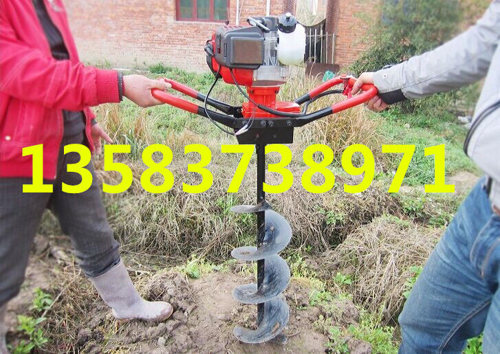 地鉆由小型通用汽油機(jī),齒輪箱及特殊設(shè)計(jì)的鉆具組成.適合在土地,凍土,冰層上打孔.廣泛用于園林,種植,植樹(shù),物探,道路建設(shè)等領(lǐng)域  2.鉆頭采用錳鋼合成更加的堅(jiān)硬。對(duì)硬土質(zhì),超硬土質(zhì),粘土,凍土等都能工作。   3.地鉆可根據(jù)樹(shù)種,選配多種規(guī)格的鉆頭,以滿足用戶需要。 4.地鉆能夠讓人們從繁重的體力勞動(dòng)解放出來(lái),廣泛應(yīng)用于植樹(shù)造林,栽種果林、籬笆、及秋季給果樹(shù)施肥等。適合各種地形,效率高,便于攜帶及野外田地作業(yè)。   5.地鉆既可以單人操作,又可雙人操作,經(jīng)濟(jì)實(shí)用。   注意事項(xiàng):1.使用正品2T(二沖程)FC級(jí)機(jī)油,嚴(yán)禁使用4T(四沖程)機(jī)油。   2.嚴(yán)禁使用純汽油。   3.嚴(yán)格按251的比例兌油. 4.新機(jī)器不可高速使用,請(qǐng)低速磨合3小時(shí)。   5.嚴(yán)禁在高速的時(shí)候突然關(guān)停發(fā)動(dòng)機(jī),否則會(huì)使下次開(kāi)機(jī)啟動(dòng)困難。   6.感覺(jué)機(jī)器震動(dòng)異常,請(qǐng)立即停機(jī)檢查,是否破損,松動(dòng),偏心。   7.嚴(yán)禁在有亂石堆的草地上使用。   8.鉆頭有嚴(yán)格的尺寸限制,嚴(yán)禁私自改裝或使用增大號(hào)鉆頭. 9.每工作一段時(shí)間清除火花塞、消音器積碳,清洗空氣濾清器,向齒輪箱加注黃油。   10.遇到問(wèn)題自己無(wú)法解決的,不要私自拆裝。   11.機(jī)器長(zhǎng)時(shí)間不用時(shí),應(yīng)該將剩余的燃油倒出,然后發(fā)動(dòng)機(jī)器將化油器內(nèi)的燃油全部燃燒干凈。   12.想讓機(jī)器運(yùn)轉(zhuǎn)更穩(wěn)定,壽命更長(zhǎng)請(qǐng)經(jīng)常保養(yǎng)。   安全事項(xiàng):   A.人身安全:嚴(yán)禁在室內(nèi)添加汽油,嚴(yán)防火災(zāi);機(jī)器運(yùn)行時(shí),嚴(yán)禁手腳靠近鉆頭;清理或檢查機(jī)器時(shí)必須停機(jī)。   B.機(jī)器安全:地鉆起動(dòng)前必須清理草坪上的雜物,確保機(jī)器安全運(yùn)轉(zhuǎn)。