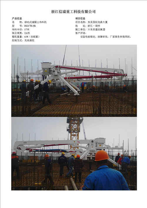 歸屬行業(yè):信瑞重工HG24A-3R樓面內(nèi)爬混凝土布料機