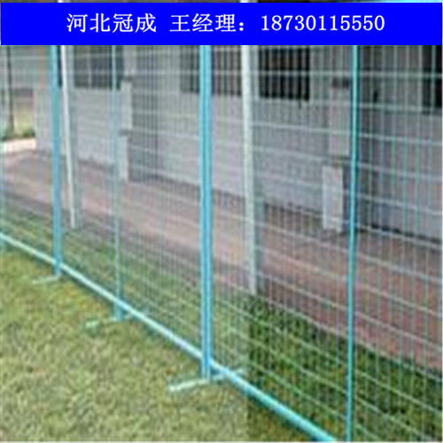 臨時(shí)護(hù)欄網(wǎng),又可以稱為移動(dòng)圍欄,臨時(shí)隔離欄,移動(dòng)式安全圍欄網(wǎng)  臨時(shí)護(hù)欄分類臨時(shí)護(hù)欄從工藝上來(lái)看可以分為兩種:1.焊接網(wǎng)臨時(shí)護(hù)欄;2.編織網(wǎng)臨時(shí)護(hù)欄。 1.焊接網(wǎng)臨時(shí)護(hù)欄網(wǎng)  主要規(guī)格如下 絲徑:3.6-6mm 孔徑:50X200mm 75X150mm 80X160mm 100X200mm等 網(wǎng)片高度:1.0-2.0m 網(wǎng)片寬度:2.0-3.0m 立柱:方形柱 圓形柱 桃形柱 新型防盜柱 表面處理:熱度鋅、 浸塑、 噴塑、 噴砂、 靜電噴涂等。 顏色:以綠色為主(黃色,藍(lán)色等)  以上規(guī)格,顏色等也可根據(jù)客戶需要加工定做。  2.編織網(wǎng)臨時(shí)護(hù)欄  主要規(guī)格如下 絲徑:1.5-4mm  孔徑:50X50mm 60X60mm 70X70mm 等  網(wǎng)片規(guī)格:1mX2m 1.5mX2m 2mX2.5m 2mx3m等?! ×⒅悍叫沃?圓形柱  表面處理:PVC包塑 熱鍍鋅  顏色:主要以綠色,藍(lán)色為主?! ∫陨弦?guī)格可根據(jù)客戶需求加工定做?! ∨R時(shí)護(hù)欄網(wǎng)是適用臨時(shí)隔離,臨時(shí)隔斷,臨時(shí)圈圍,是靈活性極強(qiáng)的產(chǎn)品?! ∨R時(shí)護(hù)欄網(wǎng)主要采用可拆接構(gòu)件將護(hù)欄主片與底座或防護(hù)柱進(jìn)行標(biāo)準(zhǔn)連接,等特定需要的時(shí)候可輕松拆除,進(jìn)行移動(dòng)安裝?!?