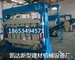 龍傳送會破壞珍珠巖顆粒。4:自動碼垛機;壓板機壓板后碼垛機自動把板材碼垛,進入烘干房或挪走自然養(yǎng)護。5:以上設(shè)備都是為壓板機服務(wù)的,所以所有輔助設(shè)備的用時,都小于壓板機的用量。這樣理論上的產(chǎn)量和實際產(chǎn)量相等。6:壓板機;20秒一次行程,一次性程壓制10塊板材,每分鐘壓制30塊板材。上下油缸內(nèi)安裝有強制限位器,這樣才能保證生產(chǎn)的
