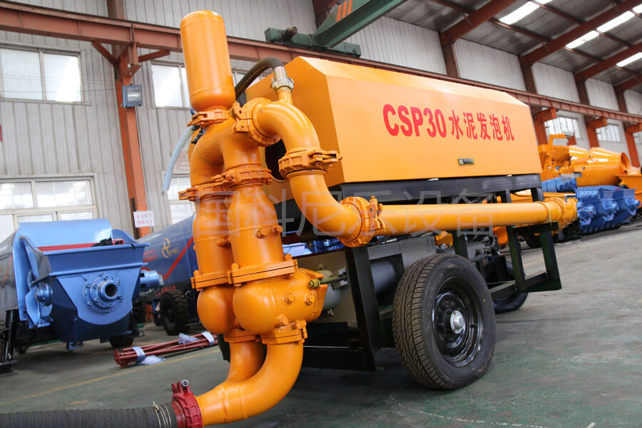 CSP系列中小型水泥發(fā)泡機(jī),是我公司自主開(kāi)發(fā)的專(zhuān)利產(chǎn)品專(zhuān)利產(chǎn)品。其中水泥發(fā)泡機(jī)由機(jī)械式改為液壓式,在相同條件下該設(shè)備所占空間更小,發(fā)泡效果更好,施工效率更高,性能更加穩(wěn)定。在地暖隔熱層施工中,以CSP-40為例,一臺(tái)單機(jī)單班施工量可達(dá)4000-5000平米(3cm厚度),輸送高度可達(dá)150米,水平距離達(dá)500米以上。水泥上料機(jī)和水泥攪拌機(jī)是其輔助設(shè)備,有了它們實(shí)現(xiàn)了上料和攪拌的自動(dòng)化,節(jié)省了人員的勞動(dòng)強(qiáng)度,大大提高了施工效率。