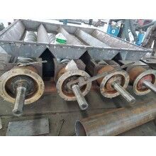 一般情況下,出廠總裝時(shí)將螺旋輸送機(jī)中間節(jié)按長(zhǎng)度長(zhǎng)短依次排列,較長(zhǎng)的中間節(jié)靠近頭節(jié),相同長(zhǎng)度的中間節(jié)則挨在一起,如果有特殊要求,則在訂貨時(shí)給出排列順序。 在螺旋輸送機(jī)頭節(jié)內(nèi)裝有支推軸承承受軸向力,在中間節(jié)和尾節(jié)內(nèi)裝有用軸承支承螺旋軸,此外,在螺旋輸送機(jī)尾節(jié)內(nèi)還裝有可軸向移動(dòng)的徑向軸承以補(bǔ)償螺旋軸長(zhǎng)度的誤差和適應(yīng)溫度的變化。