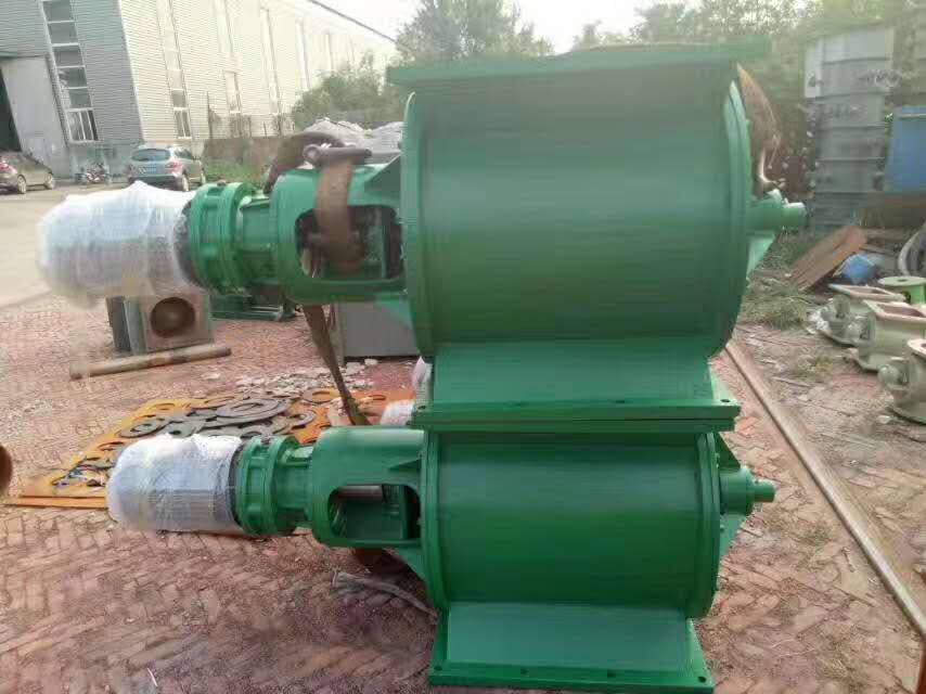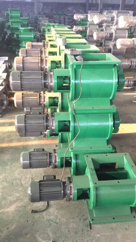 工作原理:星型卸料器工作時,粉塵靠重力落入,充滿上面和側(cè)面的星形葉片空格。葉片轉(zhuǎn)子由電動機通過減速機轉(zhuǎn)動軸帶動,葉輪轉(zhuǎn)到下部粉塵靠自重卸下。這種卸塵器一般都安裝在除塵器灰斗下部,為保證連接處的嚴(yán)密不漏風(fēng),在回轉(zhuǎn)卸料器的上部應(yīng)經(jīng)常保持(儲存)一定高度的粉塵。因為葉輪轉(zhuǎn)動時,卸完粉塵后葉輪轉(zhuǎn)上的那一面經(jīng)常是沒有粉塵的,所以容易使空氣漏入。為了保持一定高度的灰柱,而且不致卸空,*在灰斗內(nèi)裝設(shè)料位信號設(shè)施,并與卸塵閥的電動機建立連鎖。