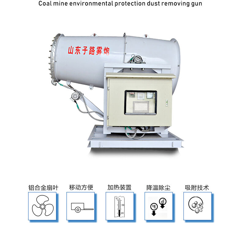 子路環(huán)??萍加邢薰疽豢钔ㄟ^高壓風機將儲存的水壓縮成灰塵大小,在利用不銹鋼噴嘴部位將水霧化吹向高空凈化空氣的一種新型環(huán)保除塵產(chǎn)品。這款產(chǎn)品名字叫高射程霧炮機,