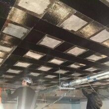 ·粘貼碳纖維片材,按設(shè)計(jì)要求裁剪碳纖維布。根據(jù)比例稱取所需膠量,進(jìn)行充分混合。將混合好的浸漬膠均勻涂抹于所耍粘貼的部位并粘貼碳纖維布。在搭接、拐角處可適當(dāng)多涂些膠。用光滑的滾筒順纖堆方向多次滾壓.?dāng)D除氣泡使JGN802浸漬膠充分浸透碳纖維布.滾壓時不得損傷碳纖維布.多層粘貼重復(fù)上述步驟.在最后一層碳纖維布的表面均勻涂抹一層浸漬膠。