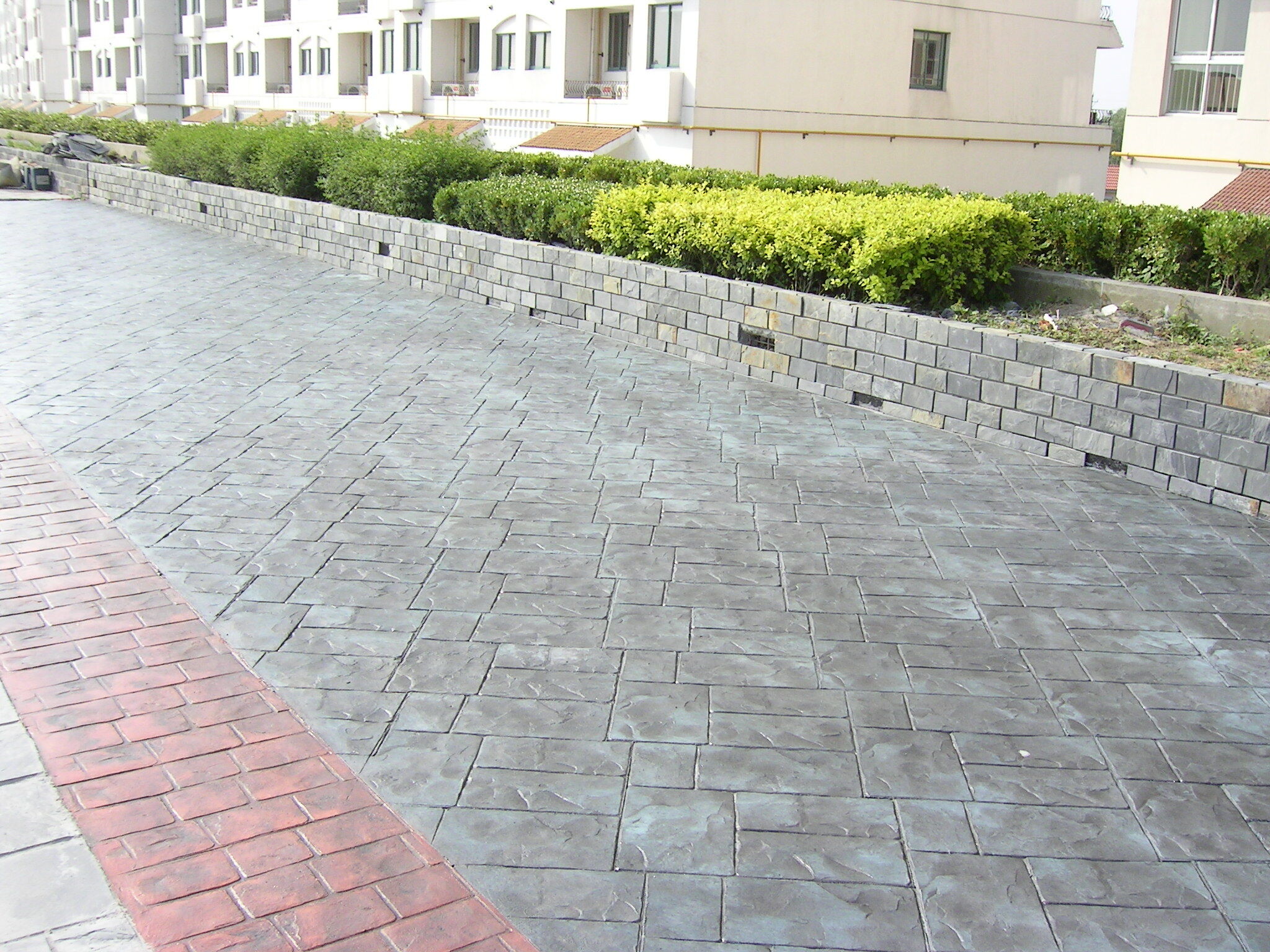 彩色壓模藝術地坪是一種新穎獨創(chuàng)的地面鋪裝體系??稍趥鹘y(tǒng)的砼材料上制作各種磚、石、木等其它材料無法達到的裝飾效果,具有圖形美觀自然、色彩豐富、質地堅固耐用等特點,克服了傳統(tǒng)磚、石鋪設地面常有的容易松動、高低不平、縫隙長草、蟲蟻筑穴、容易起塵、路面整體性差、色彩單調、需經(jīng)常維修等特點,結合了傳統(tǒng)磚、石鋪設地面的美觀自然與砼的堅固耐用特點,是替代磚石鋪設路面的一種新型地面材料。