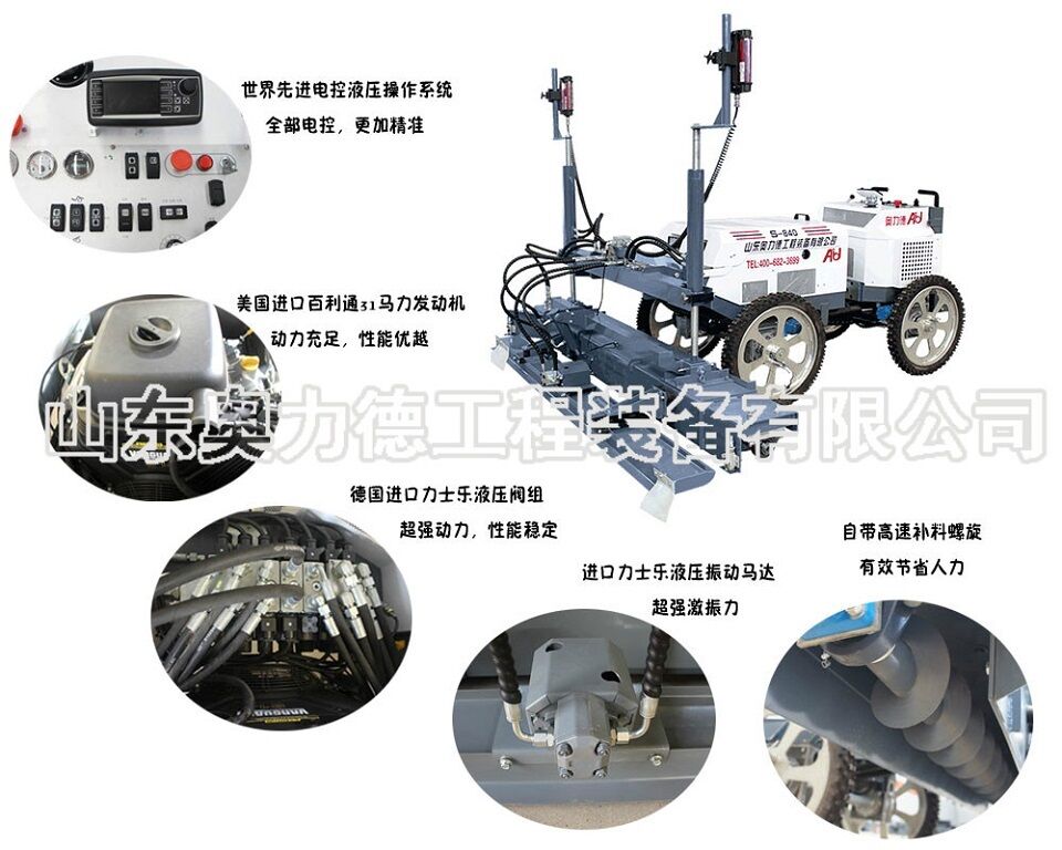 由刮板、振動器、振動板、絞龍等部件組成,將攪拌、找平、震平、振搗,等多道工序整合到一起,由機器一次性完成。提高效率,節(jié)省人工。