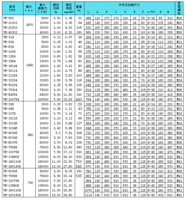 VB-1584-W振動電機外形安裝尺寸技術參數(shù)表