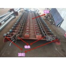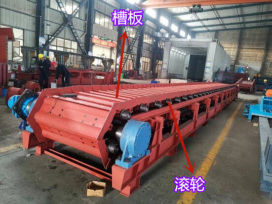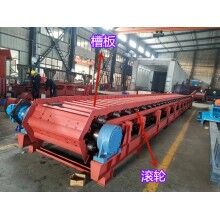 板式給料機運行部件由牽引鏈條,承載構件行走滾輪和輸送槽板等組成。