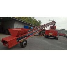 新型履帶移動(dòng)式堆料機(jī),以皮帶輸送機(jī)的物料輸送功能為主體,皮帶輸送機(jī)的兩端分別設(shè)置有傳統(tǒng)的入料裝置和出料裝置。其特征在于,還包括履帶底盤和行走輪,皮帶輸送機(jī)的一端通過轉(zhuǎn)盤機(jī)構(gòu)與履帶底盤連接,皮帶輸送機(jī)的另一端通過鉸接機(jī)構(gòu)與行走輪連接,整個(gè)裝置由液壓馬達(dá)驅(qū)動(dòng)履帶行走,動(dòng)力可采用柴油發(fā)動(dòng)機(jī)或外接電源。