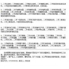 主要包括二手離心機(jī),臥螺離心機(jī),二手碟式離心機(jī),二手臥式螺旋沉降離心機(jī),二手反應(yīng)釜,二手不銹鋼反應(yīng)釜,二手搪瓷反應(yīng)釜,二手搪玻璃反應(yīng)釜,二手壓濾機(jī),二手板框壓濾機(jī),二手箱式壓濾機(jī),二手過(guò)濾機(jī),二手干燥機(jī),二手管束干燥機(jī),二手流化床干燥機(jī),氣流干燥機(jī),管束干燥機(jī),滾筒干燥機(jī),二手閃蒸干燥機(jī),二氣流噴霧干燥機(jī),壓力噴霧干燥機(jī),離心噴霧干燥機(jī),并流噴霧干燥機(jī),冷凍干燥機(jī),真空干燥機(jī),雙錐回轉(zhuǎn)真空干燥機(jī),二手蒸餾塔,二手酒精塔,二手振動(dòng)篩,流化床振動(dòng)篩,蒸餾釜,二手貯罐,不銹鋼儲(chǔ)罐,玻璃鋼儲(chǔ)罐,臥式儲(chǔ)罐,防腐儲(chǔ)罐,液氨儲(chǔ)罐,二手蒸發(fā)器,薄膜蒸發(fā)器,雙效蒸發(fā)器,三效蒸發(fā)器,二手高頻振動(dòng)篩,二手振動(dòng)篩,二手導(dǎo)熱油爐,二手蒸汽鍋爐,二手米糠油機(jī)械,二手胚芽油機(jī)械,二手榨骨機(jī)設(shè)備,二手蒸脫機(jī),二手蒸炒鍋,二手軟化滾筒、軋胚機(jī)、烘干機(jī)、剝殼機(jī)、振動(dòng)流化床干燥機(jī)、圓篩、振動(dòng)篩、平篩、膨化機(jī)及進(jìn)口膨化機(jī)、板框過(guò)濾機(jī)、振動(dòng)排渣葉片過(guò)濾機(jī)、冬化過(guò)濾機(jī)、離心機(jī)、阿法拉發(fā)碟式分離機(jī)、脫皂機(jī)、冷凝器、換熱器、水化罐、精煉罐、脫臭罐、脫色罐、立絞籠、平絞籠、提升機(jī)等,進(jìn)出口色拉油設(shè)備、生化油設(shè)備、氫化油設(shè)備、生物柴油設(shè)備、設(shè)備及各種零配件等。