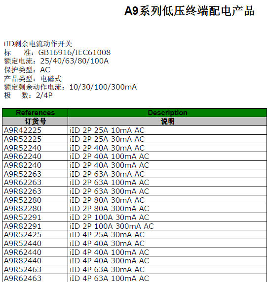 歸屬行業(yè):施耐德動作開關(guān)iID 2P 80A 30mA AC