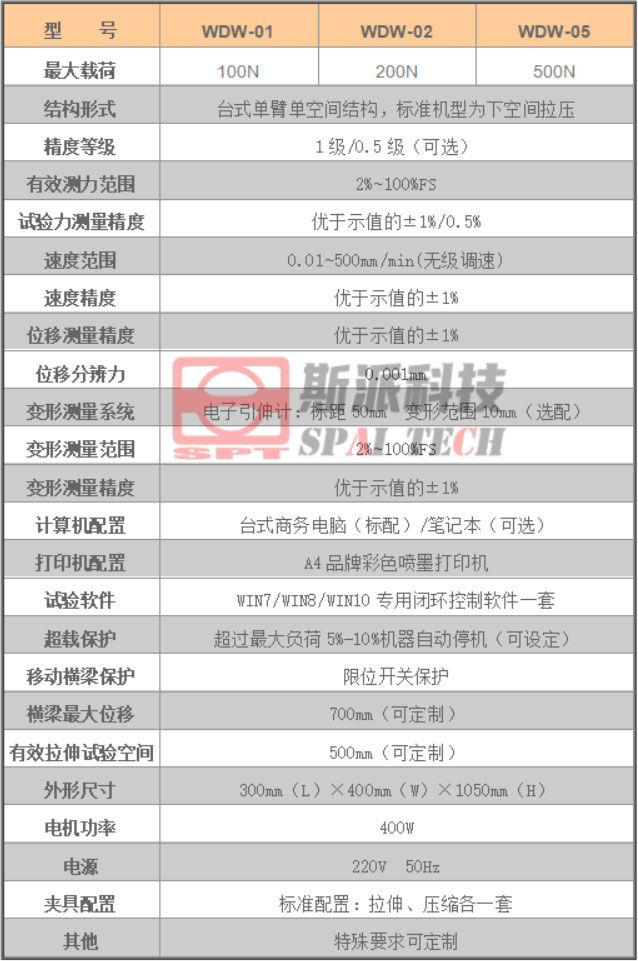 WDW系列臺式微機(jī)控制電子萬能材料試驗機(jī)采用結(jié)構(gòu)緊湊的單臂式主機(jī)結(jié)構(gòu)、占用空間小,可直接放置于辦公桌面上操作使用。本機(jī)選用日本松下(Panasonic)伺服調(diào)速系統(tǒng)、精密設(shè)計同步減速系統(tǒng)、臺灣上銀(HIWIN)/銀泰(PMI)滾珠絲杠、美國傳力(Trancell)/世銓(Celtron)力傳感器等主要部件,主要應(yīng)用于非金屬材料及小力值金屬材料的拉伸、壓縮、彎曲等力學(xué)性能試驗,具有結(jié)構(gòu)簡單、穩(wěn)定可靠、外形美觀等特點,深受廣大用戶的歡迎。