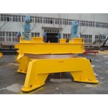 上支座安裝在回轉(zhuǎn)支承上面且與回轉(zhuǎn)支承的內(nèi)圈聯(lián)接。下支座是起重機不可回轉(zhuǎn)部分的一廂形支座,在它的上平面裝有回轉(zhuǎn)支承外齒圈,下支座與回轉(zhuǎn)支承的外圈通過螺栓聯(lián)接,借助回轉(zhuǎn)機構(gòu)實上、下支座間的相對回轉(zhuǎn)運動。上支座上接回轉(zhuǎn)塔身,下支座下接塔身標準節(jié)。