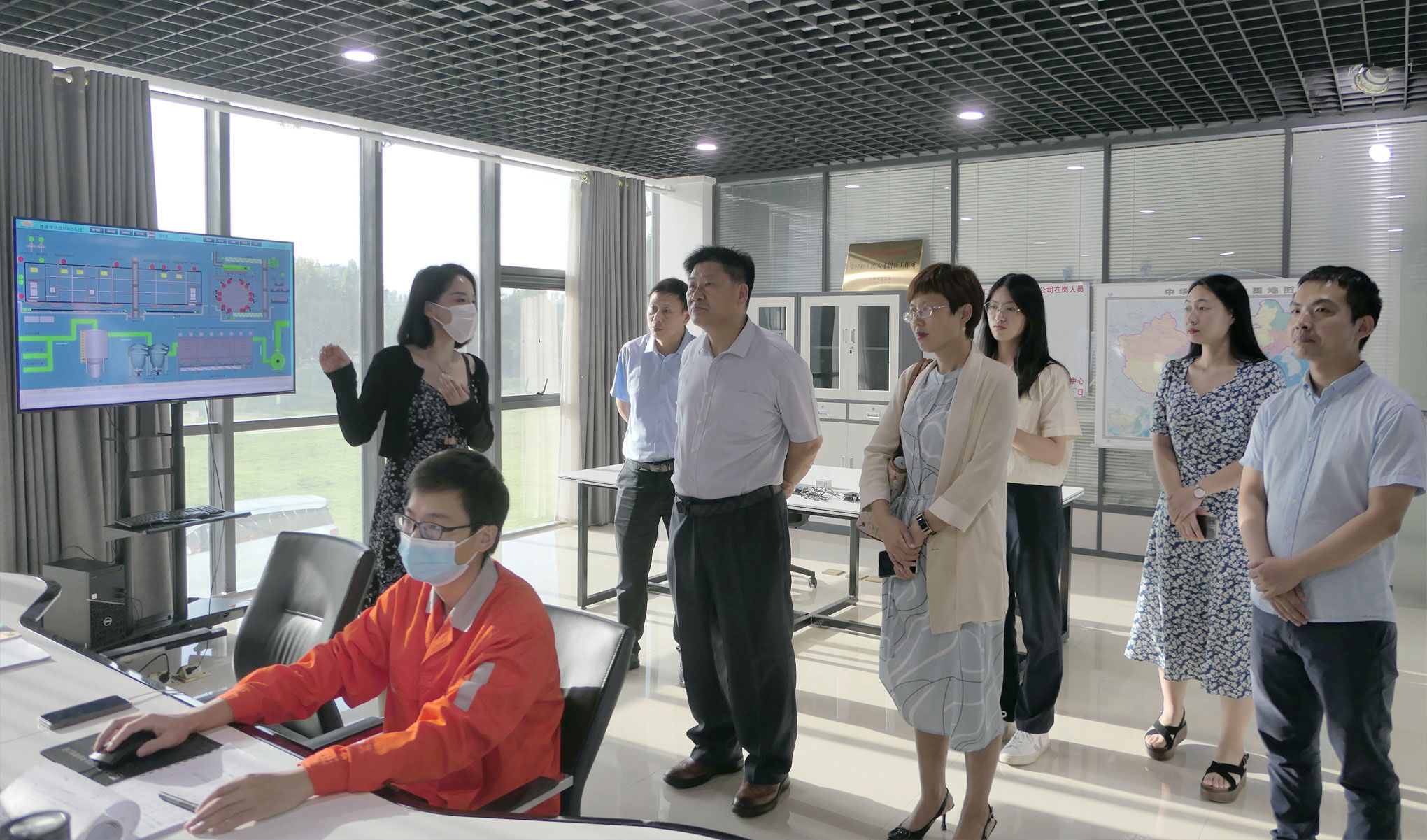 公司副總經(jīng)理孔鮮寧等陪同符忠軒會長一行參觀德通多媒體展廳,匯報振動攪拌技術研發(fā)及應用成果。
